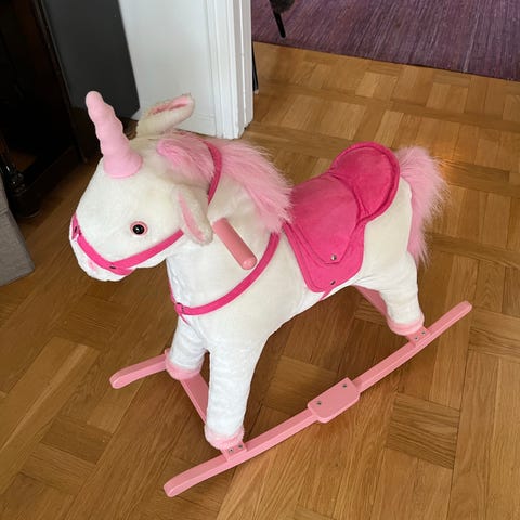 Mer information här https://www.litenleker.se/animal-riding/animal-riding-unicorn-melodie-vit-medium-large