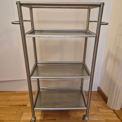 Säckhållare i fint skick i kromad metall och kromat lock. Ca 1 meter hög och ca 48 cm i diameter, locket.