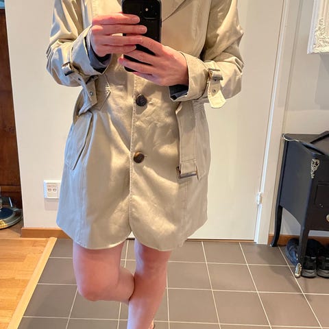 Busnel kappa för dam storleken saknas men jag är 176 cm och den sitter på mig som på bilden. Modellen är i blå ull med dubbelknäppning framtill och dekorativa knappar. Plagget har utanpåliggande fickor och är stickad i ett tätare ullmaterial. Lämplig som ytterplagg under svalare årstider.