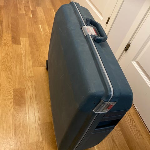 resväska i plast för unisex. Hårdt skal med slät, räfflad yta och fyra hjul för enkel förflyttning. Utrustad med utdragbart handtag upptill samt sidhandtag för att kunna bäras. Väskan har dragkedja runt om och ett inbyggt fäste på baksidan som kan användas för att haka fast extra utrustning eller tillbehör. Passar som resväska för olika typer av resor. 35x25x50