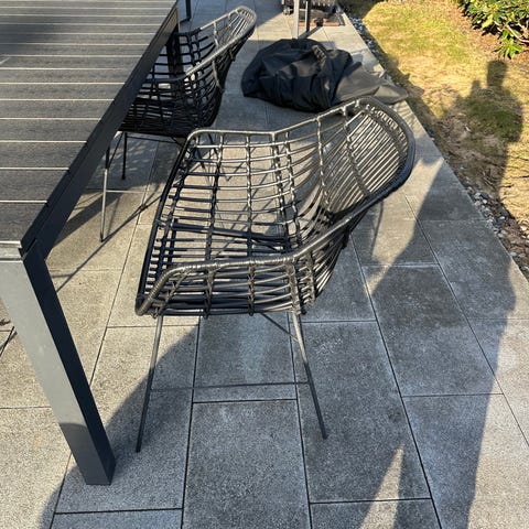 Matgrupp utomhus bord och stolar konstrotting grå