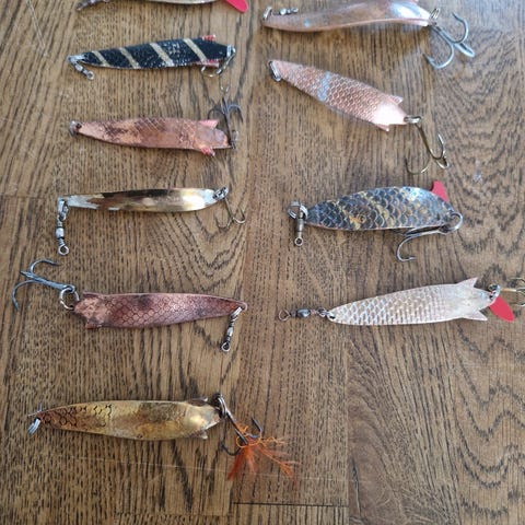 Blandade fiskedrag och draglåda