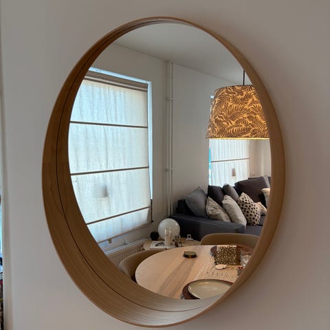 IKEA STOCKHOLM spegel i rund modell med ram i trä.