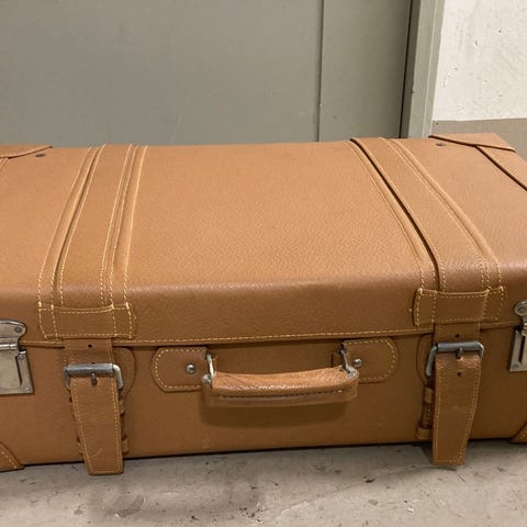 Stor vintage resväska i äkta läder – weekendväska / inredningsdetalj