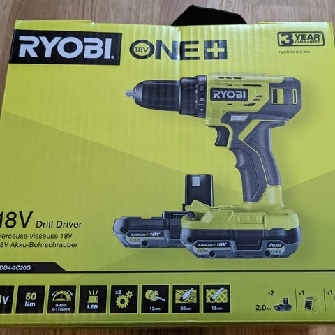 Nyinköpt Ryobipaket med Ryobis bästa borrmaskin, eller "borrskruvdragare med slag" som den heter. Modellen RPD18X1 är den förbättrade modellen till sin föregångare RPD18X. Därför bara borrmaskinen, idag, kostar 1899:-