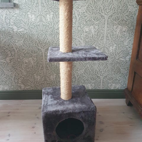 Fint nästan oanvänt klösträd till katt säljes då vår katt inte gillade att klättra i det. 130 cm högt. Inköpt på Arken zoo, nypris 1490,-