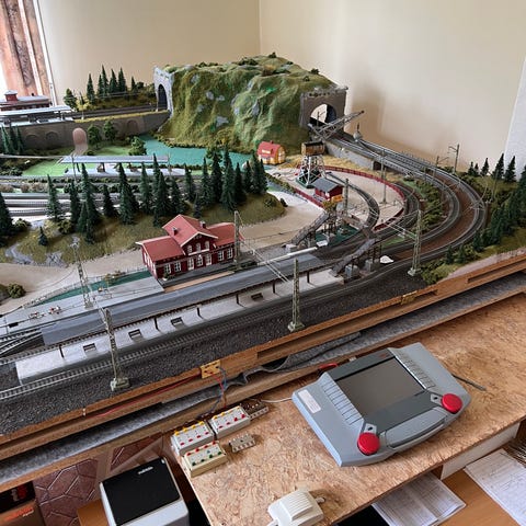 Lokstall för Märklins vändskiva 5 portar med servokontroll till alla portar, komplett.