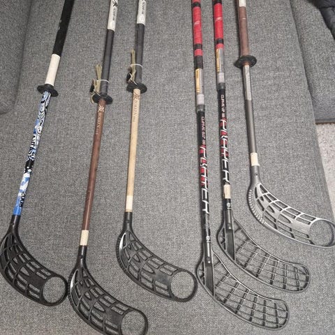 Innebandyklubbor med tillhörande blad i svart och röd färg. Setet inkluderar även ett fodral i svart med orange detalj för förvaring och transport. Passar för innebandyspel inomhus. Klubbornas längd och material är inte angivna.