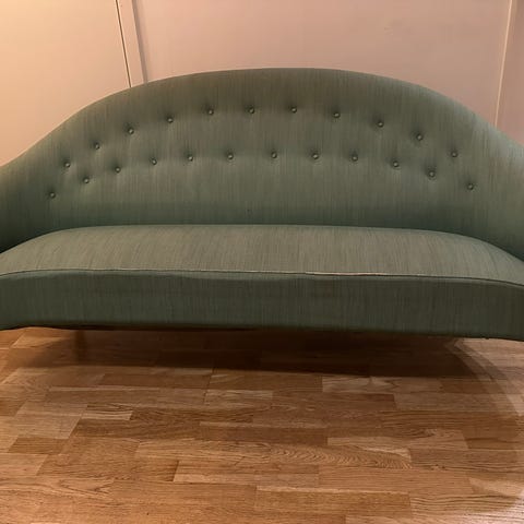 Liten nätt soffa från Chilli. Nuvarande namn Clivocast. Måtten från Chili är annorlunda än de jag uppmätt , jag har mätt maxpunkterna. Soffan är aningen hård och passar därför för hall eller liknande.