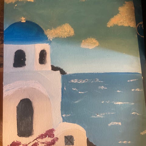 Konstgrafik tavla med kustmotiv i ram