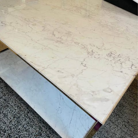 Vridbart soffbord med förvaring/hylla.