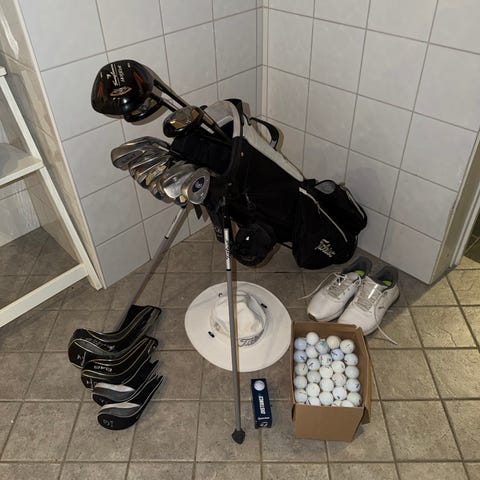 Säljes pågrund av att det inte används längre. Komplett sett med putter, sandwedge, p-6, hybrid 4, trä 3 och driver. Hämtas i Jönköping, tar swish.