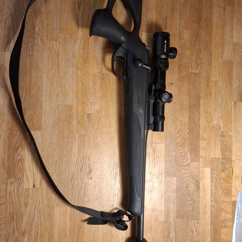 R8 Succes .308, som gått ca 100 skott. Kikare Zeiss m. nattbelysning. Stalon dämpare.