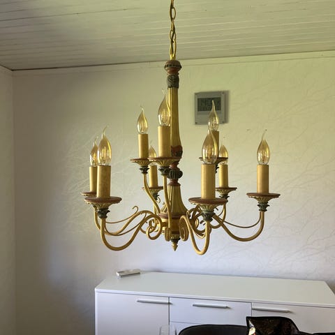 Svenskt Tenn taklampa formgiven av Josef Takupphängning med kedja och takkopp i mässing. Passar som belysning över matbord, i vardagsrum eller hall där man önskar en klassisk taklampa med karaktäristisk Josef Frank-design.