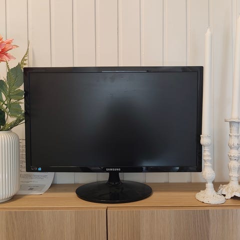 Passar till stationär dator eller som extra skärm till laptop. Skärmarna står på stabila bordsstativ. Strömkabel ingår.