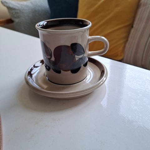 Arabia Kirskikka kaffekoppar med fat vit grön röd porslin