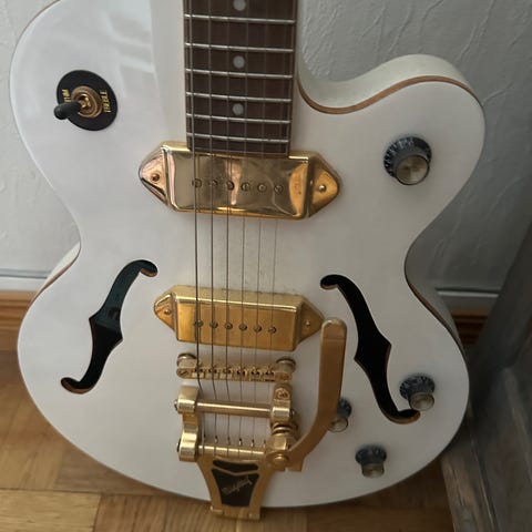 Gretsch med P90 mickar av klass. Märkescase medföljer.