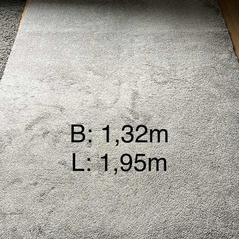 Heltäckningsmatta. 21 st hela bitar som är 50x50 cm och täcker ca. 5,25 kvm. Utöver detta finns en del mindre bitar. Mattan har legat på ett golv tidigare och varit fäst med tejp.