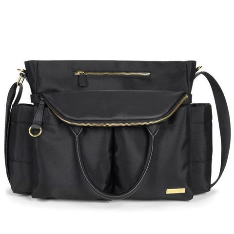 Svart skötväska med gulddetaljer från skip hop modell chelsea. Flera ytterfickor och dragkedjefack. Väskan har både korta handtag och axelrem för flexibel bärning.