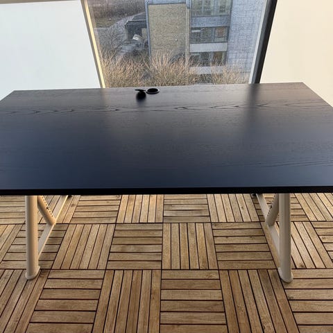 Skrivbord i valnöt modell IDÅSEN från Ikea (2021). Se mått för bild. Går att montera bort benen.