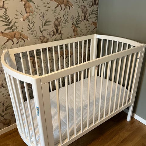 Den ovala designen gör att barnet ligger tryggt och sängen tar liten plats. Ventilerande sidor ger bra luftcirkulation.
