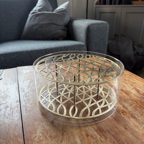 Fint skick på varen, men silvret har märken från vatten i nederdelen.