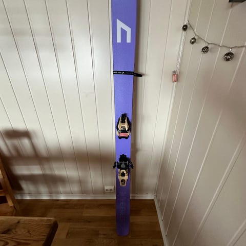 Salomon QST 99 skidor i längd 188 cm. Allmountain/freeride-modell med midja på 99 mm. Utrustade med monterade bindningar. Passar för åkning både i och utanför pisten. Förvånansvärt lättcarvade och roliga i pist. Tyvärr åker jag för sällan med dem o säljer därför. Totalt använda 4 dagar och därför i riktigt fint skick. Inga belagsskador. Att de ser flammiga ut beror på att jag själv vallar dem som skydd under förvaringstiden. Försvinner när man proppar för åkning. Monterade Salomon / Marker Warden 11