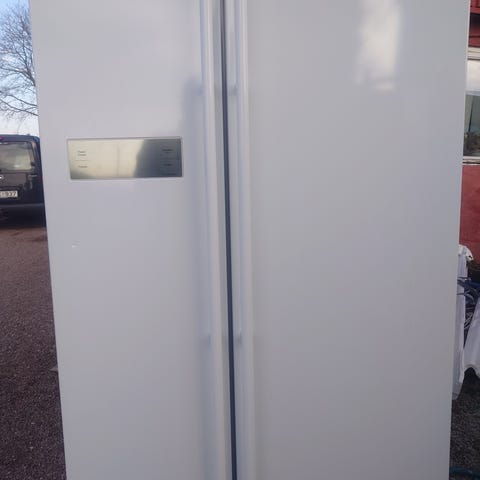 Siemens side-by-side kylskåp i rostfritt stål. Kylskåp överst i dörrarna och frys i lådorna. Fin och fräsch men finns tecken på användning. Fungerar som den ska.