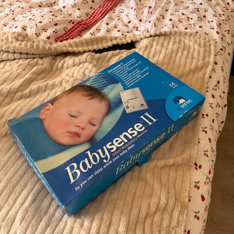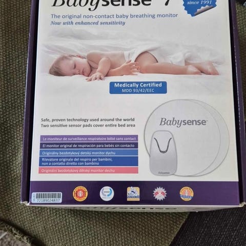 Babysense 7 använt till två barn och vi är mycket nöjda med både hur smidig den är och hur väl den har fungerat. Batteriet räcker länge och enkel att byta ut. Går att använda en sensor när barnet är litet och väger mindre för att senare koppla in den andra för bättre täckning av säng. Det medföljer två sensorer och huvudenheten, originalförpackning med följer ej men förpackar väl i annan kartong om det skickas.