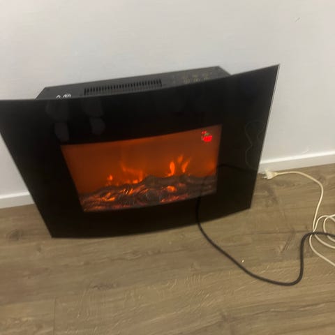 Elektrisk väggmonterad kamin svart glas med dekorstenar