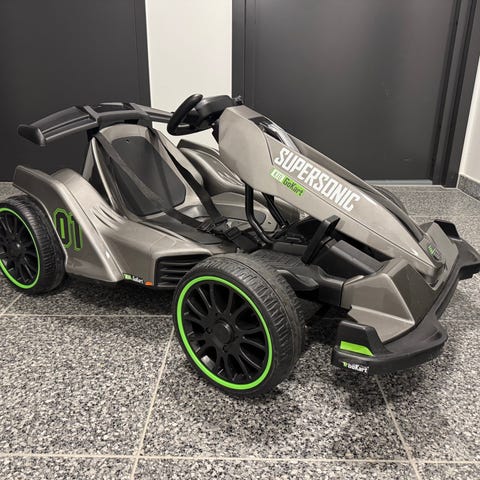 Batman Batmobile elbil leksaksbil i svart och gult för barn. Bilen är utformad som Batmans bil med tydlig Batman-logotyp på ryggstöd och ratt. Sätet är enkelplats med plats för ett barn. Karossen är i hård plast med detaljerade former framtill och på sidorna. Leksaken är avsedd för utomhusbruk på plana underlag som gård, uppfart eller trottoar. Elbilen körs med fotpedal och styrs med ratt. Passar barn som vill köra egen batteridriven leksaksbil med Batman-tema.