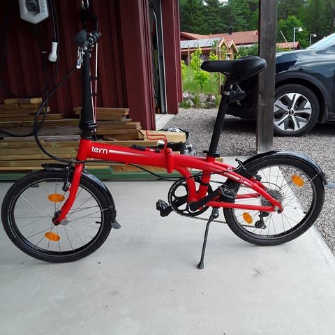 Camping cykel , går att fälla ihop. Väska medföljer . Växlad ej fotbroms