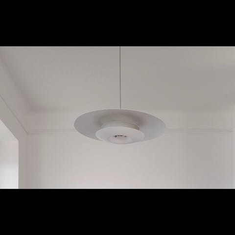 En taklampa från den svenska tillverkaren Belid. Lampan är från serien Primus ll och är justerbar i höjden.