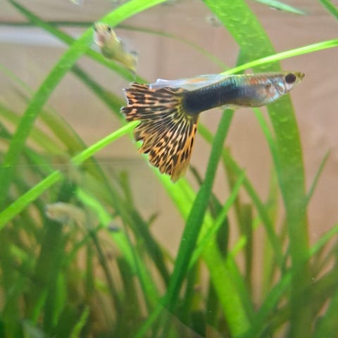 Egen genetisk linje, Stardust. Endast ung fisk erbjudes. 5 för 100 kr. Bilden visar exempel på en nästan fullvuxen hane. Passa på om du vill ha dessa gener i din guppy koloni. Välkommen till Hökarängen för upphämtning.