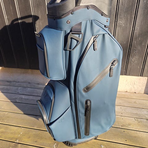 Den nya bär/vagn bagen från HIO i stilren design. Bagen är stor och rymlig vilket gör att du får plats med allting som du kan tänkas, och inte tänkas, behöva under golfrundan. Bagen är i syntetiskt läder och är vattenavvisande. Den 7-delade toppen med fullängdsavdelare hjälper dig att hålla ordning på klubborna i bagen.