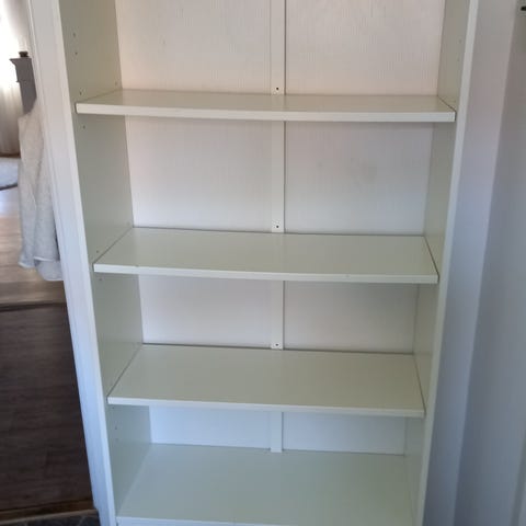 IKEA bokhylla i vit färg. Bokhyllan har öppna hyllplan upptill och två lådor nedtill med runda beslag. Hyllplanen är raka och ger plats för böcker, dekoration eller förvaring. Möbeln är fristående och passar exempelvis i vardagsrum, sovrum eller kontor för ordnad förvaring och exponering av föremål.