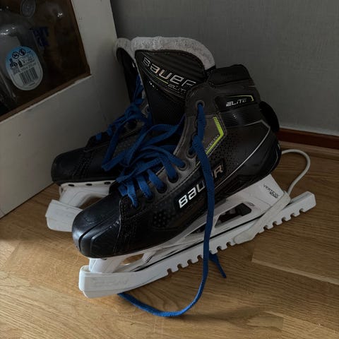 Bauer Konekt HF2 målvaktsskridskor i stl 6-6,5. Skridskorna är i ett fint begagnat skick. Utöver allmänt slitage så är det enda att anmärka på ett mindre slitage i inneskorna. Inget av det påverkar funktionaliteten.
