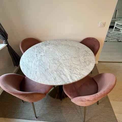 Runt marmor matbord med svarta ben