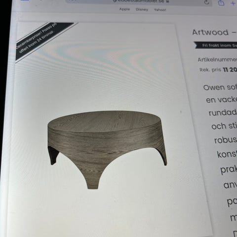 Hej säljer mitt helt nya artwood maddox soffbord som aldrig är använt men har några skador på sidan, annars är det helt som de skall men blivit fel i tillverkningen på sidan där av priset. Ny pris ca 13,500:-