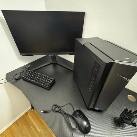 Stationär Gaming pc med tangentbord, mus, trådlösa hörlurar, skärm