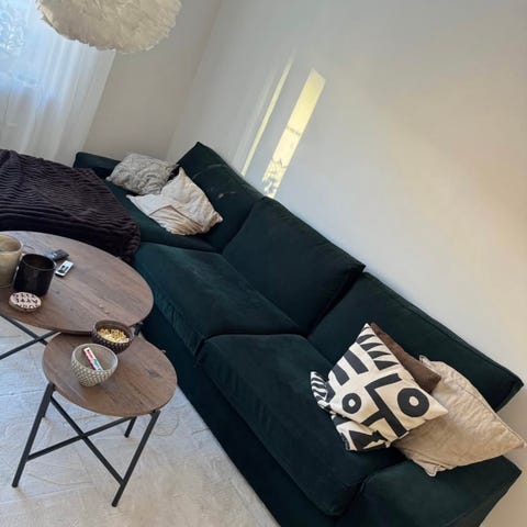 Landskrona hörnsoffa som är i stort sett oanvänd. Mått finns på sista bilden. Finns på Öster Mälarstrand i Västerås.