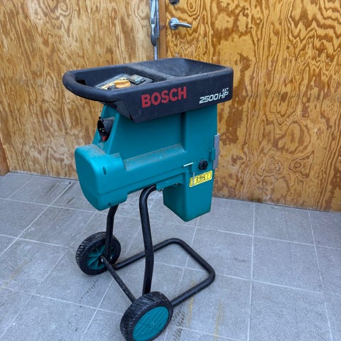 Bosch AXT 25 TC kompostkvarn med Turbine Cut System. Elektrisk trädgårdskvarn avsedd för flisning och kompostering av grenar och trädgårdsavfall. Utrustad med inmatningstratt upptill, uppsamlingsbehållare i nederdelen samt hjul för enklare förflyttning i trädgården. Maskinen har manöverpanel med reglage och säkerhetsbrytare. Lämplig för användning vid beskärning av buskar och träd samt allmän hantering av trädgårdsavfall i hemmamiljö.