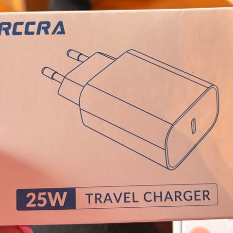 2 st ARCCERA 25W reseladdare. Laddaren är svart och har en USB-C-port. Den levereras med en USB-C till USB-C-kabel.
