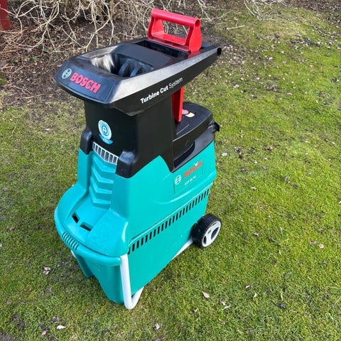 Bosch 2500 HP kompost kvarn / flishugg med 2500 W motor. Avsedd för flisning och kompostering av trädgårdsavfall. Maximal grentjocklek enligt märkning är 4 cm. Maskinen drivs med 230 V