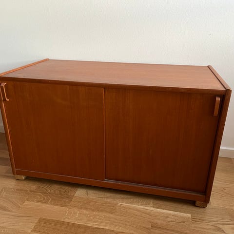 Säljer ett skåp i teak till stringhylla. Passsr perfekt in i ett system med golvgavlar eller som fristående, önskar man gavlar så kan de skickas med, vanliga 30 djupa och 76 höga. Skåpet ärr 30 djupt och 78 bred,