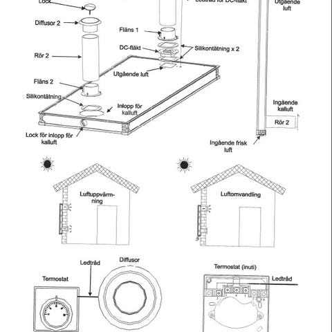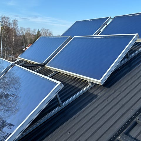 2 st solfångare/solmattor inkl styrventil för montage på tex ett tak. Måtten på 1 st är 1,16 m bred & 8 meter lång, dvs 2 sektioner blir totalt ca 16 kvadratmeter. Fabrikat: Primastar. Nypris: 10.000 sek. Ålder: ca 10 år. Solfångarna har rullats ihop och förvarats inomhus på vinterhalvåret. På sommaren har de värmt en pool på 4 x 8 meter. Pris: 1.750 SEK.