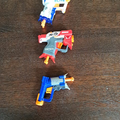 Tre mindre Nerf-pistoler. 30kr styck.