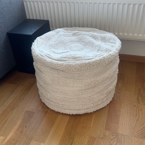 Sittpuff Ziggy från Hemtex, offwhite. Lite sammanfallen, går dock att fylla på med material då dragkedja finns.
