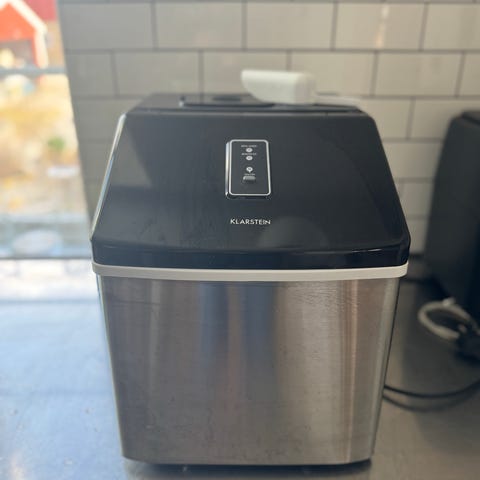 Ismaskin , upp till 60 bitar på en timma. Inköpt på Kjell och company .