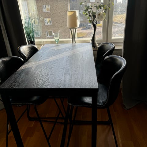 Rejäl köksö från IKEA inkl. Två st barstolar höj och sänkbara i sammet.